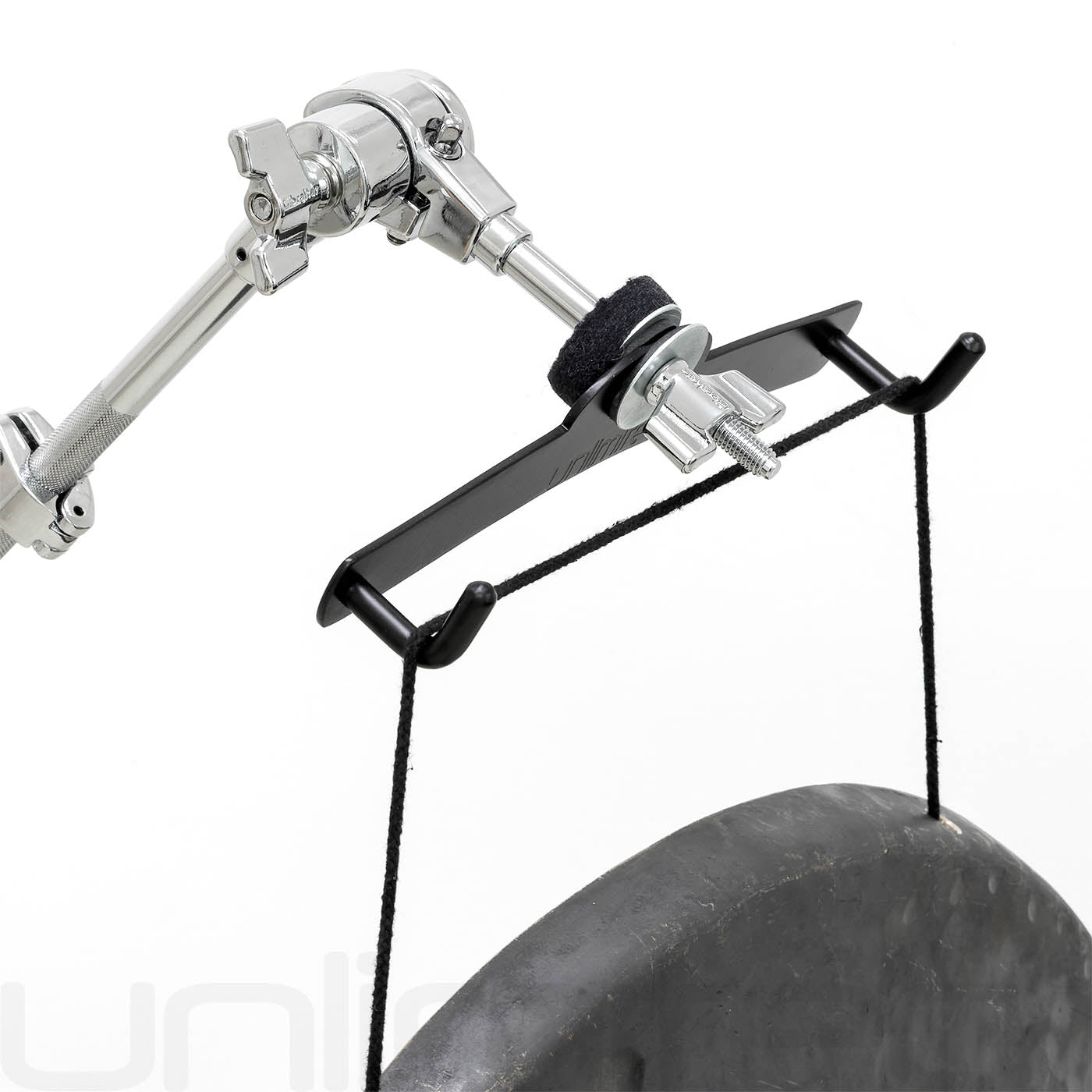 If you've been wondering how to mount your gong to a cymbal stand, then you may wonder no more! Did you stop wondering? For we bring to you, the Unlimited Gong Adapter, for cymbal stands! Affix the unit to your preexisting cymbal stand and mount your gong to the hooks. Boomba! Now you can play some T. Rex with your cool garage band, both getting it on and banging your gong.